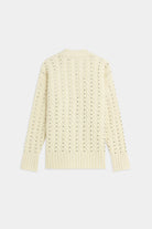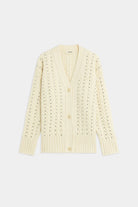 Cardigan in maglia a trecce con applicazioni di borchie tonde lungo il motivo lavorato. Modello con scollo a V, maniche lunghe e chiusura frontale con bottoni. Fondo e polsini a coste. Linea morbida dal fit confortevole.