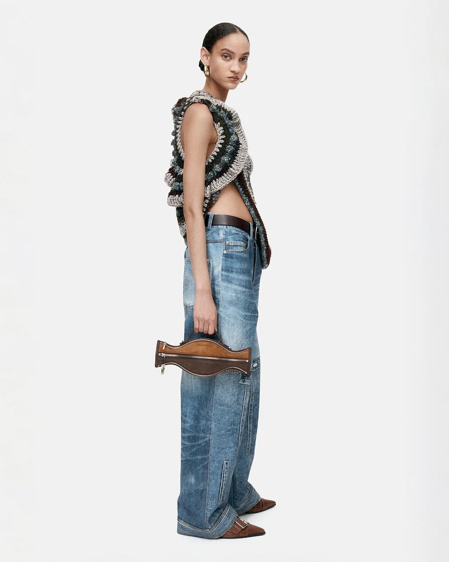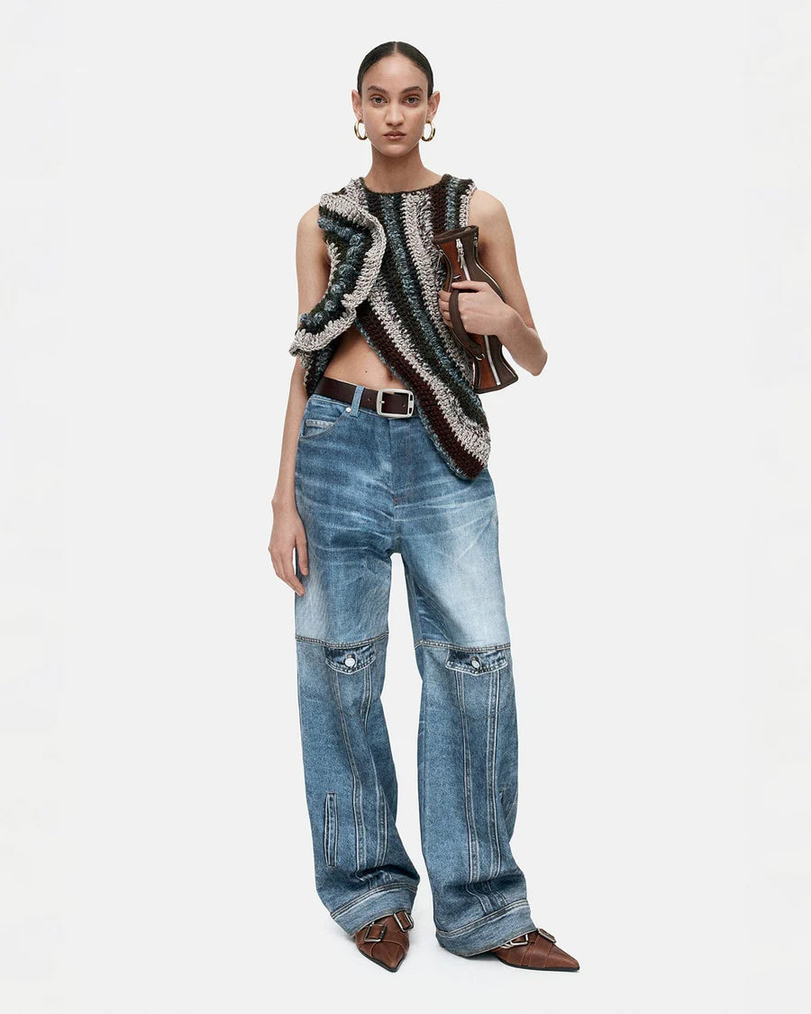 Jeans sabbiato con stampa taschini giacca