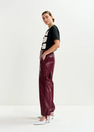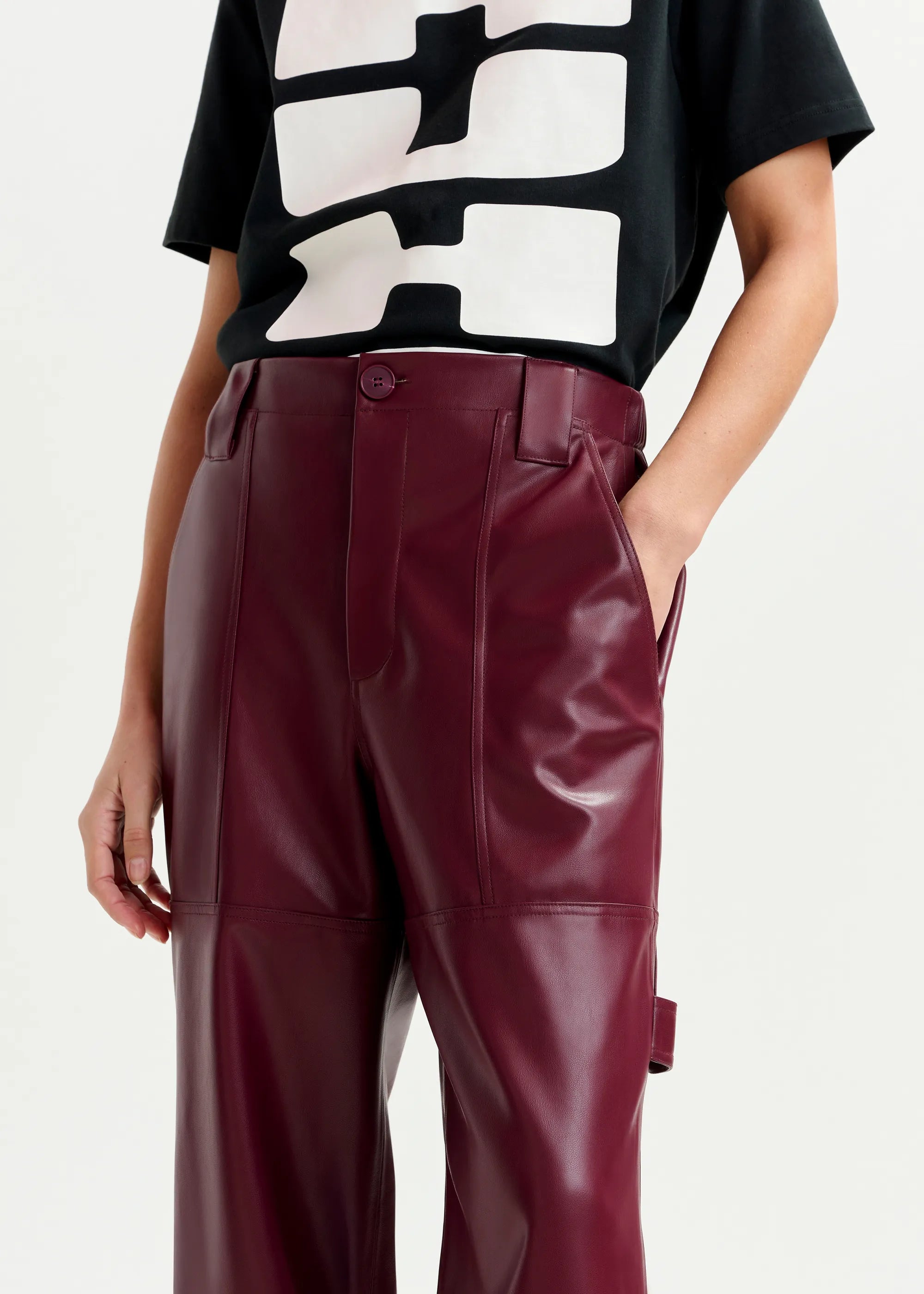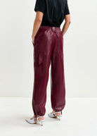 Pantaloni cargo bordeaux a gamba affusolata in eco pelle