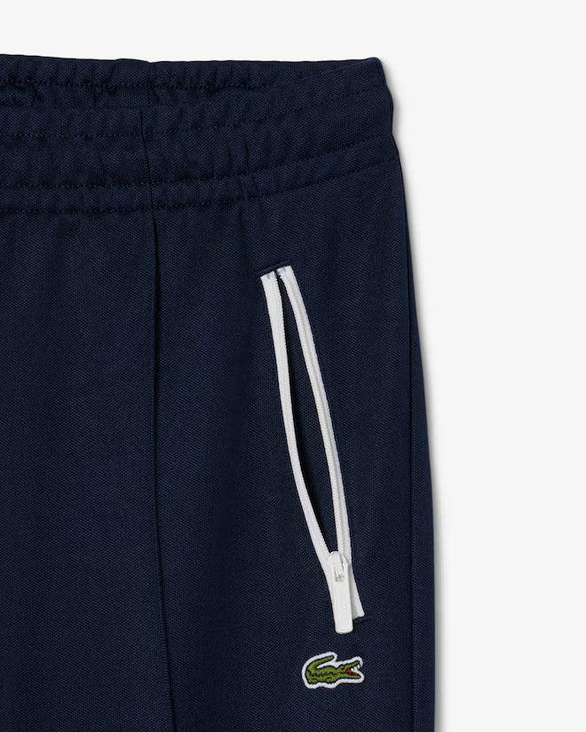 Questi pantaloni felpati sono una versione elegante e sofisticata firmata Lacoste di un capo sportswear essenziale. Realizzati in piqué interlock con un taglio svasato e dettagli sofisticati, tra cui zip a contrasto e pieghe frontali. Il connubio perfetto tra moda e sportswear, rifinito con l'iconico coccodrillo ricamato.