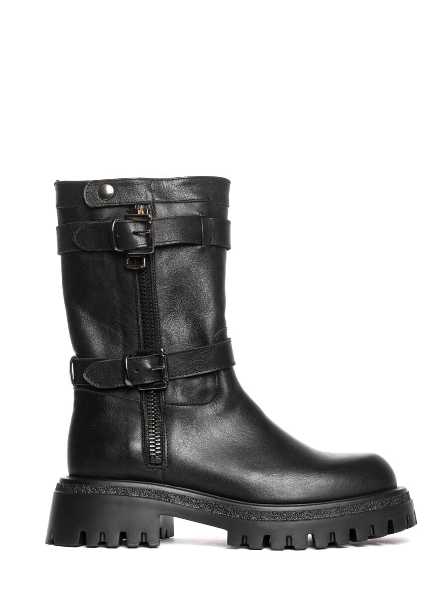 Biker Belfast nero con punta tonda drappeggio