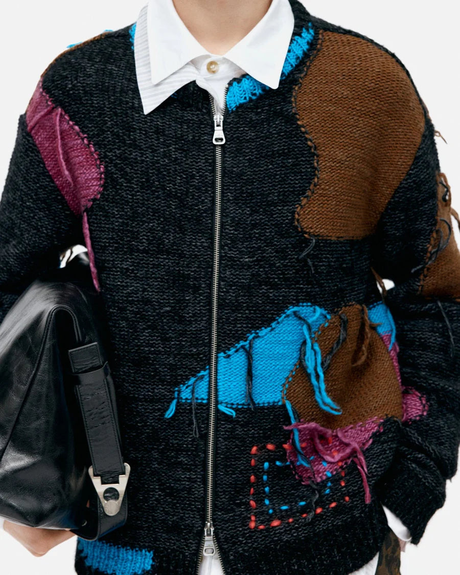 - Filato misto lana con lavorazione a rovescio a intarsio