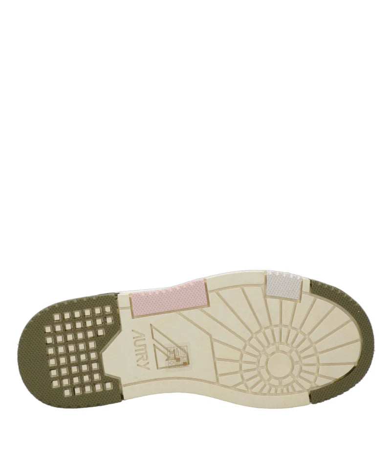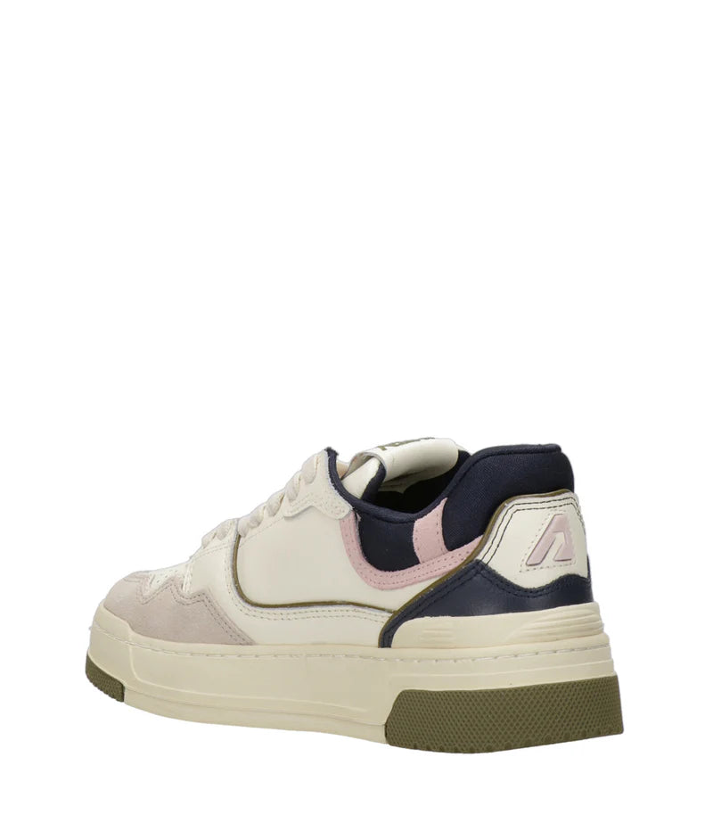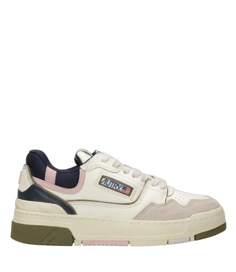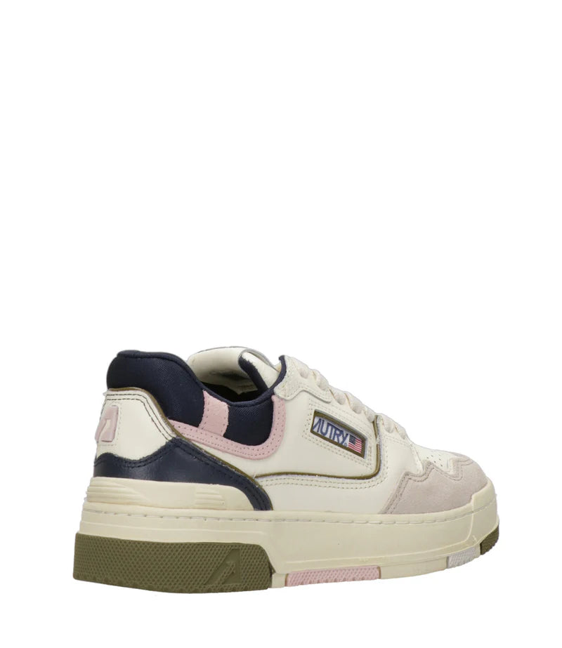 Sneakers Autry CLC Low Woman realizzata in pelle con dettagli in suede, colletto alla caviglia in mesh imbottito, con battistrada in gomma a rilievo, modello basket.
