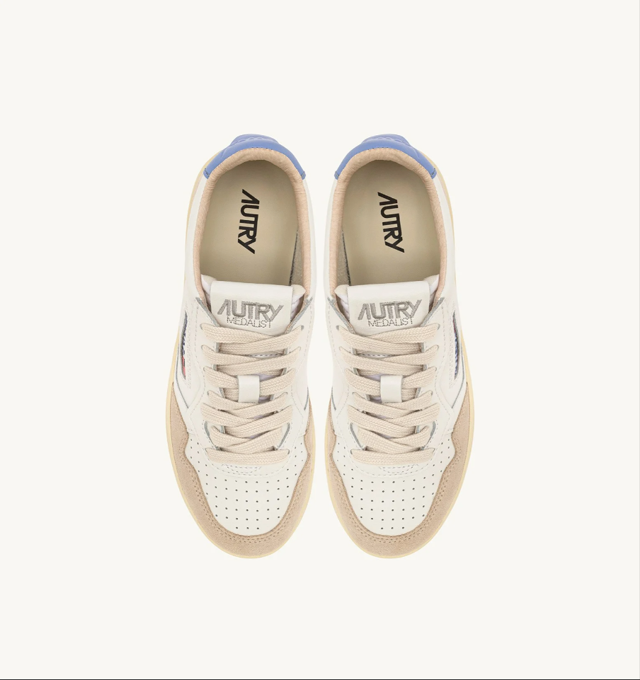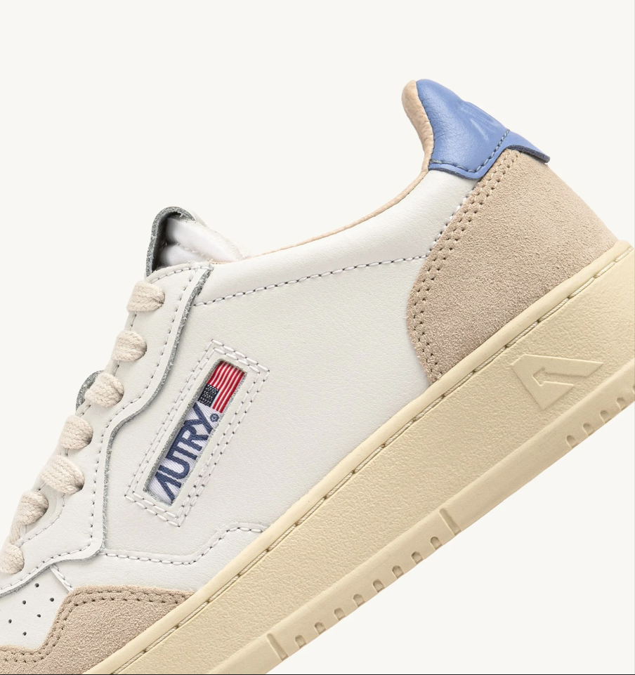 Il dettaglio in pelle celeste che decora il tallone è personalizzato con il logo Autry.