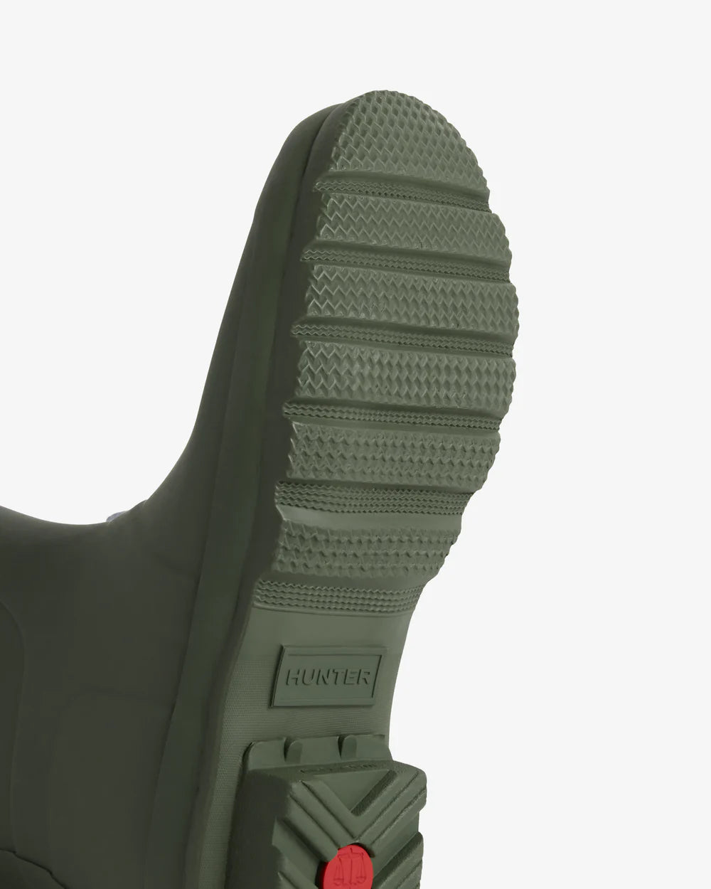 Consigliamo di indossare tutti gli stivali Hunter con i calzini per proteggere la pelle dal contatto con la gomma. Tutti i calzini Hunter sono appositamente progettati per l'uso con la nostra gamma di stivali e presentano una parte superiore ripiegata per coprire il bordo in gomma e nylon dello stivale, prevenendo qualsiasi sfregamento dovuto all'usura.