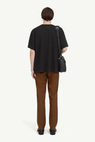Questa t-shirt esibisce una stampa trompe l'oeil dell'etichetta numerica, fissata con un nastro da imballaggio fotorealistico. Ispirato a capi d'archivio trasformati a mano, il modello gioca con la percezione, l'irriverenza e l'illusione. Rifinita sul retro con la linea di impunture bianche, un dettaglio discreto che richiama MM6.