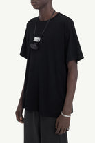 Tessuto principale: 100% Cotone T-shirt squadrata, dettaglio minimale, cotone Girocollo Maniche corte, taglio dritto Design con orlo dritto Applicazione centrale sul petto con numeri Cucitura visibile sul carré posteriore White stitch line sul retro