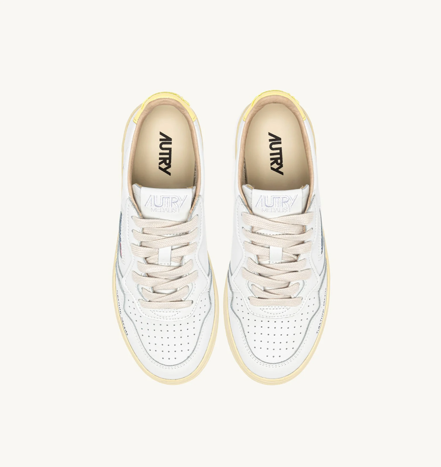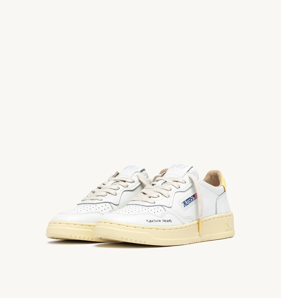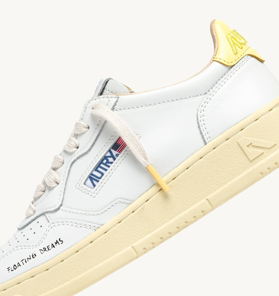 Il talloncino in pelle giallo, il dettaglio laterale jacquard e la label cucita sulla linguetta sono personalizzati con il logo Autry, mentre la stampa lettering laterale "Floating dreams" caratterizza ulteriormente il look.