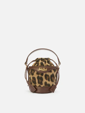 Borsa a secchiello Mila Tweed in misto lana tweed leopardato