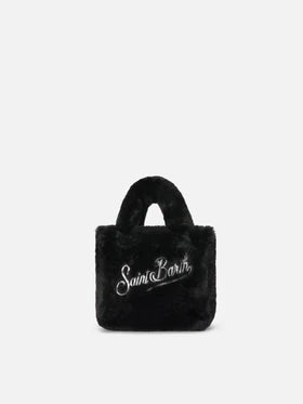 Borsa morbida a mano Vanity Mini Soft in faux fur nero
