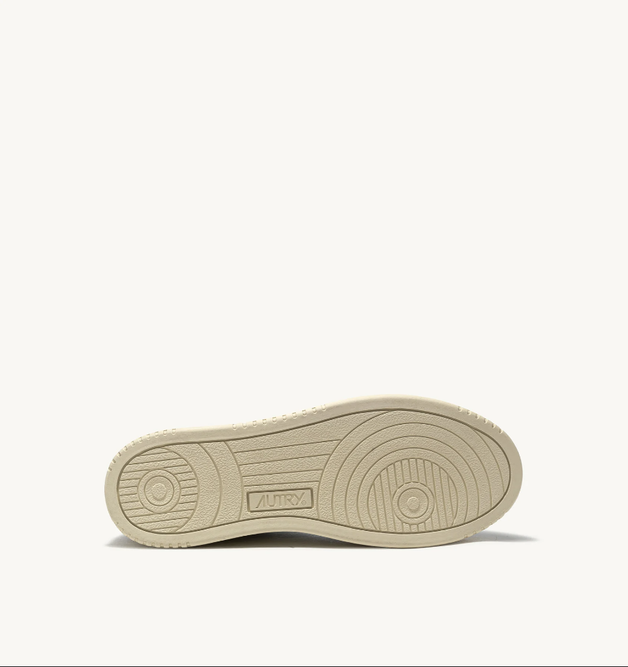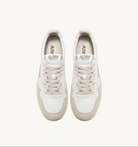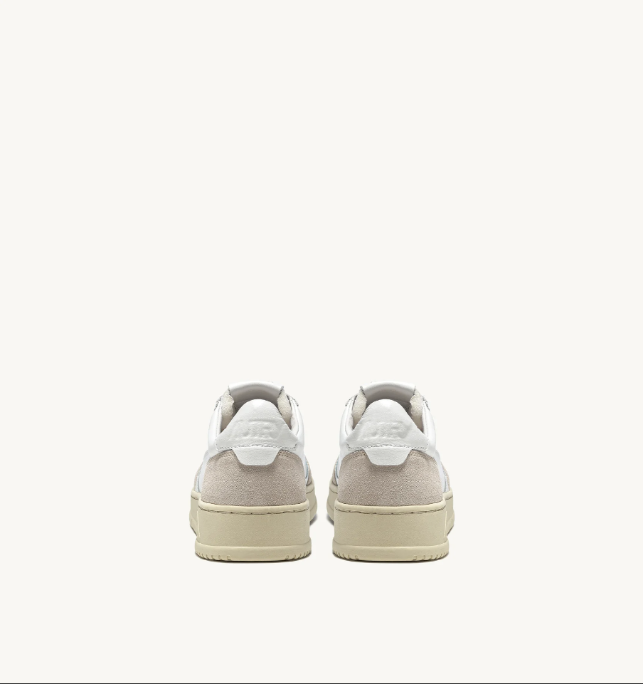 Questa scarpa da ginnastica da uomo è realizzata in morbida pelle bianca dall'aspetto autentico ed è rifinita con rinforzi in suede beige per un mix tattile e grafico deciso. Il dettaglio in pelle bianca che decora il tallone è personalizzato con il logo Autry.