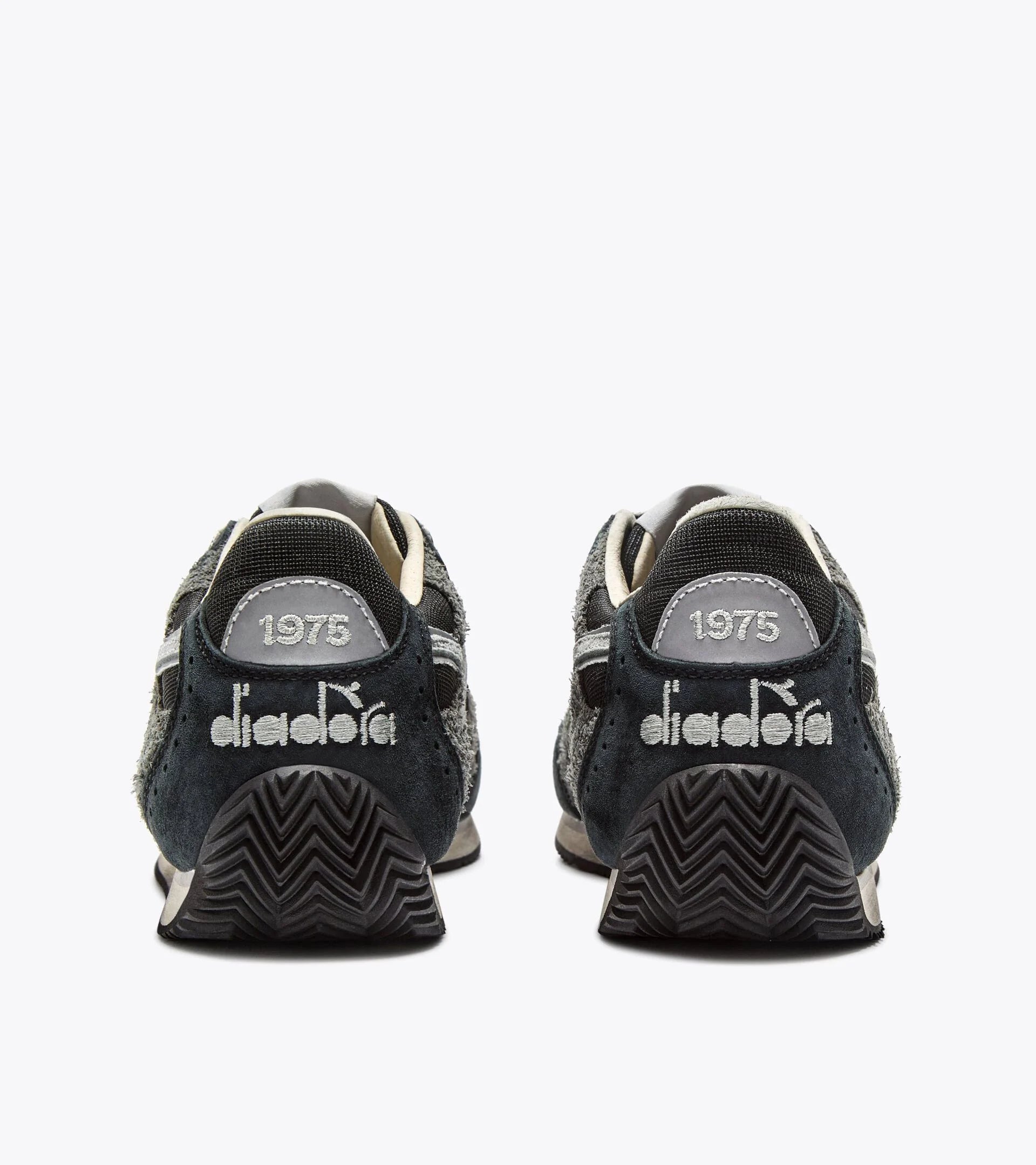 Un mix di texture elaborato per una sneaker unica: Equipe Revenge Used è realizzata in suede con dettagli in hairy cow suede. I trattamento stone wash e wax ammorbidiscono la pelle e donano il classico effetto used, firma inconfondibile della linea Heritage Diadora.