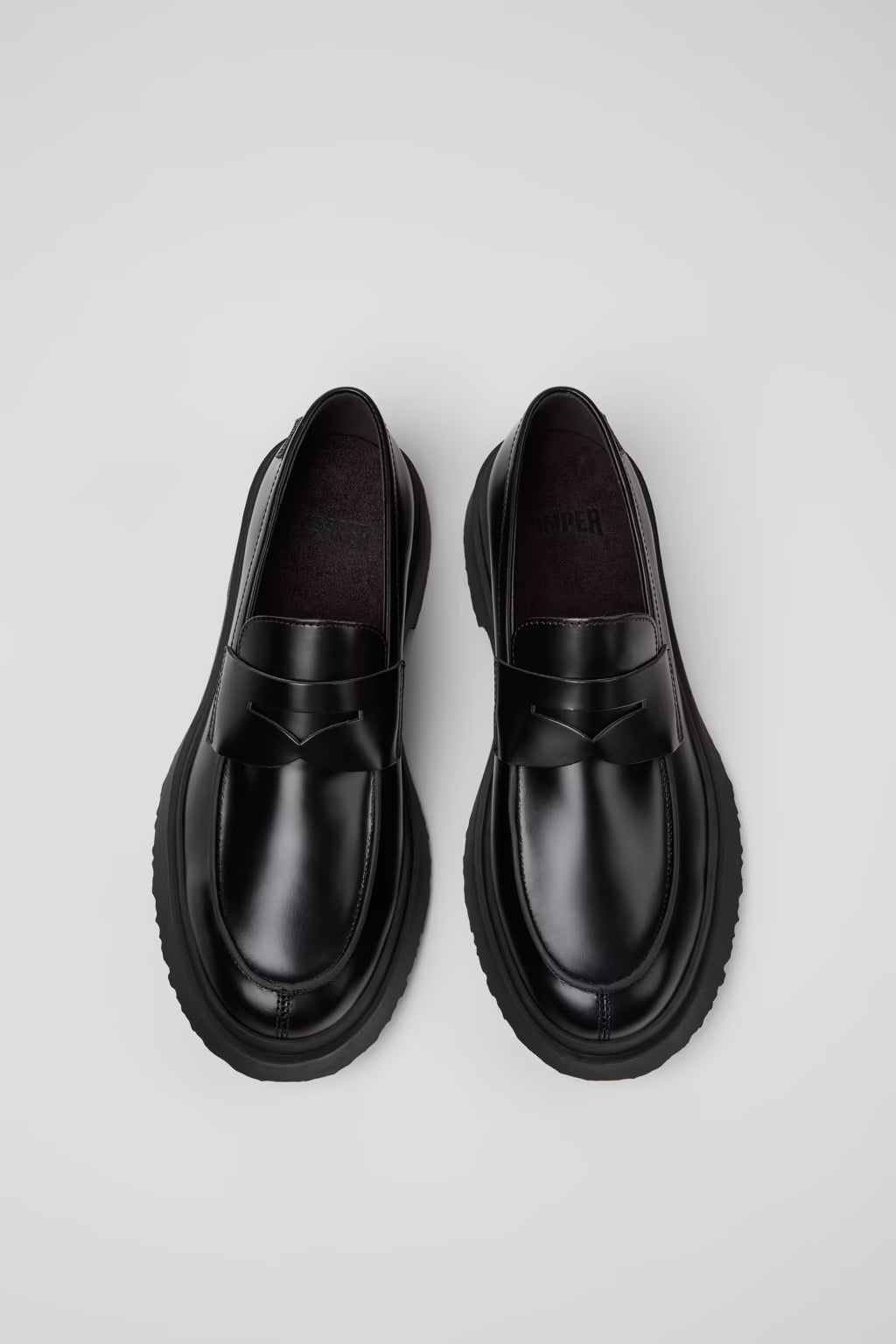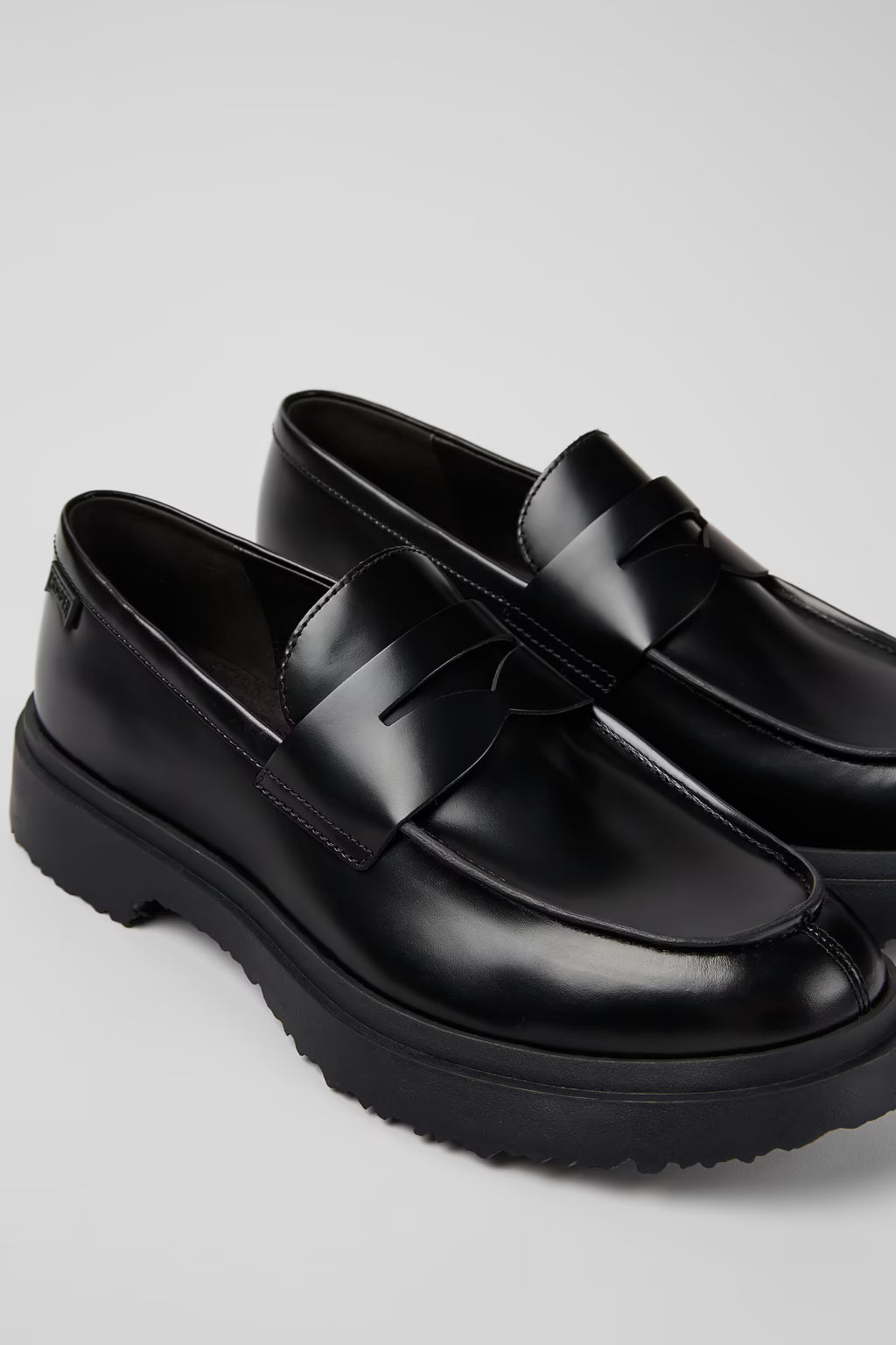 Mocassini neri in pelle di vitello da uomo con solette OrthoLite® Recycled™ e suole in gomma.
