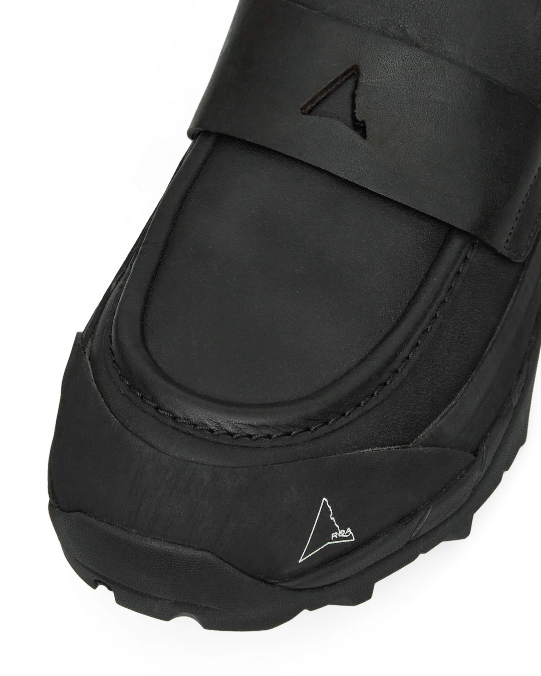 Variante ibrida di ROA di un classico mocassino. Tomaia in morbida pelle di vitello toscana, resistente e protettiva. Suola in gomma Vibram® Megagrip personalizzata per la massima trazione e puntale in gomma per una maggiore protezione