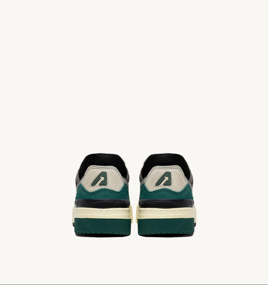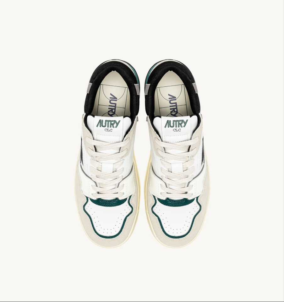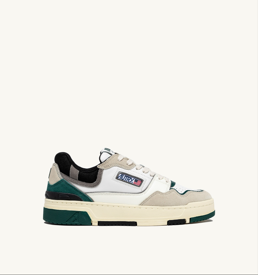 Rivisitazione dai volumi extra della classica Medalist, la CLC è l'acronimo di counter-lock-cord, il rinforzo alla caviglia tipico delle scarpe da basket. Questa sneakers da uomo è realizzata in pelle bianca con dettagli verdi e neri e inserti in suede grigio chiaro e verde scuro che creano contrasto.