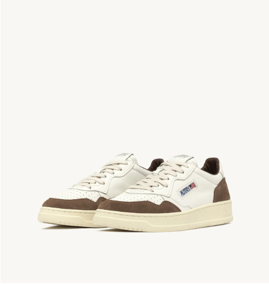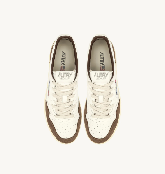 La Medalist di Autry inaugura una nuova era dello stile e del comfort. Con profilo basso alla caviglia, questa scarpa da ginnastica da uomo è realizzata in pelle di capra bianca e ha inserti in suede marrone con talloncino bianco a definire la tomaia.