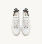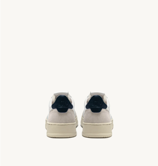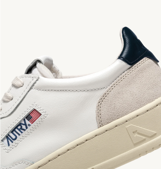 Questa scarpa da ginnastica da uomo è realizzata in morbida pelle bianca dall'aspetto autentico ed è rifinita con rinforzi in suede beige per un mix tattile e grafico deciso. Il dettaglio in pelle blu che decora il tallone è personalizzato con il logo Autry.