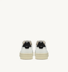 Questa scarpa da ginnastica da uomo è realizzata in pelle bianca, morbida e dall'aspetto naturale, rifinita con la lavorazione a microfori sulla punta che offre un'ottima traspirabilità. Il dettaglio sul tallone in pelle nera aggiunge un tocco grafico al look.
