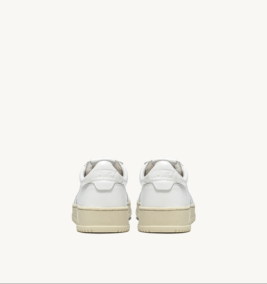 Questa scarpa da ginnastica da uomo è realizzata in pelle bianca, morbida e dall'aspetto naturale, rifinita con la lavorazione a microfori sulla punta che offre un'ottima traspirabilità. Il dettaglio sul tallone in pelle bianca è personalizzato con il logo Autry.