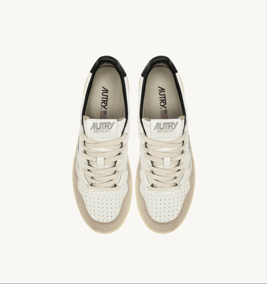 Sneakers medalist low in pelle e suede bianca e nera con lettering