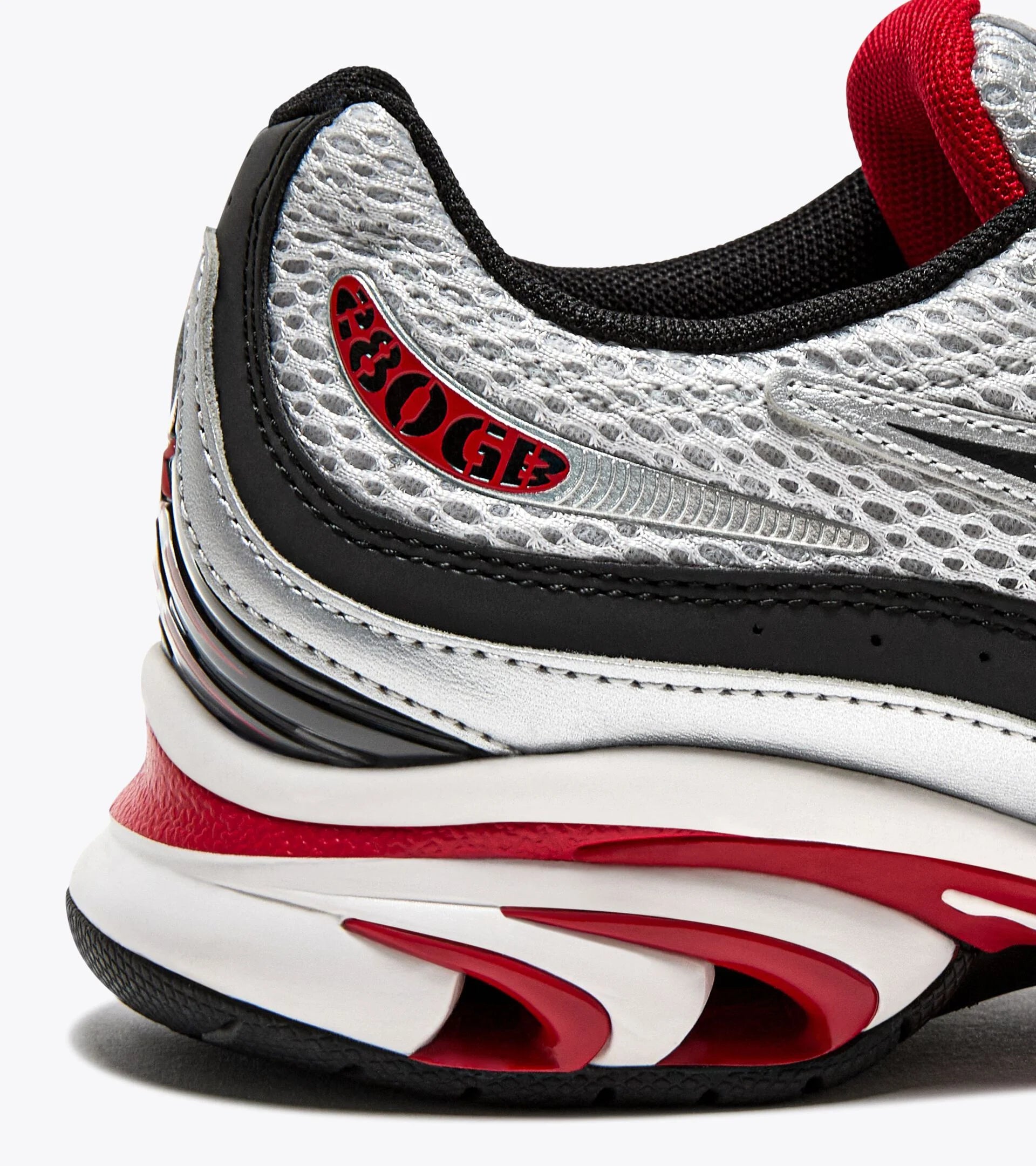 Mythos Propulsion 280 è la scarpa sportiva genderless in mesh e pelle sintetica con finiture metallizzate e dettagli reflex e tpu trasferito. La foglia di alloro sulla linguetta e le finiture della tomaia celebrano la vittoria sportiva e le fiamme della fiaccola olimpica.