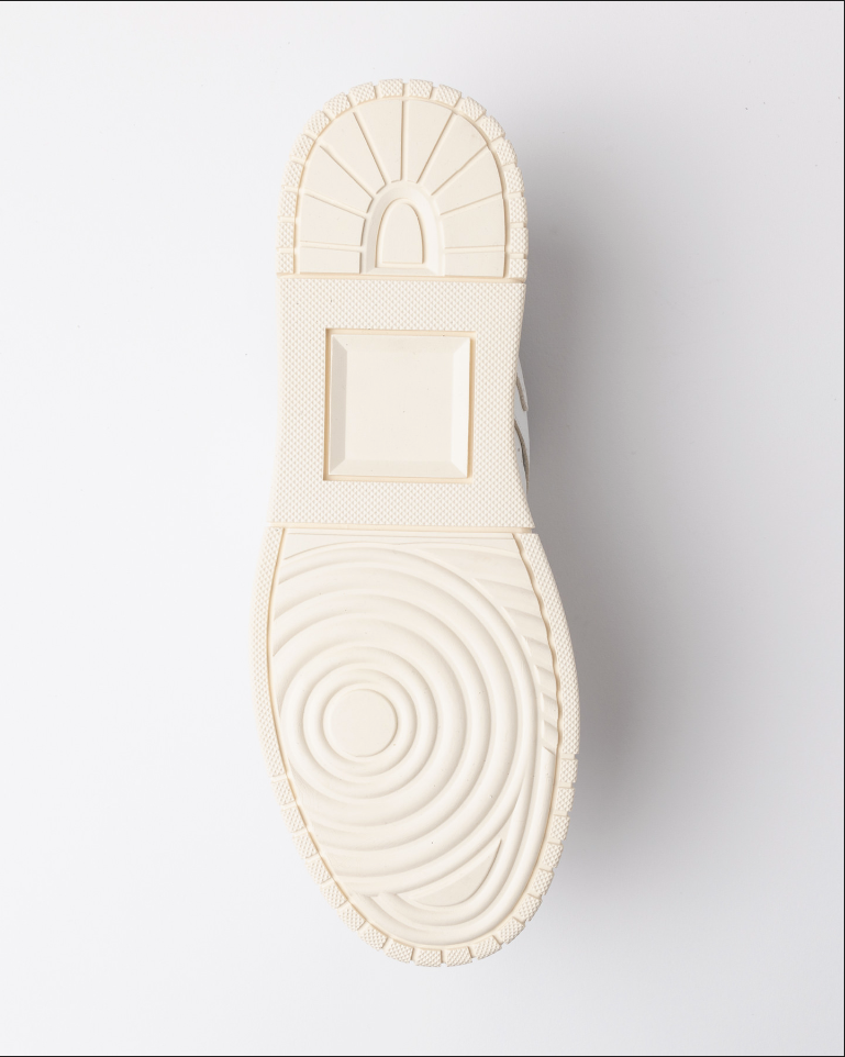 La suola in gomma, alta 2.5 - 4 cm, è cucita.