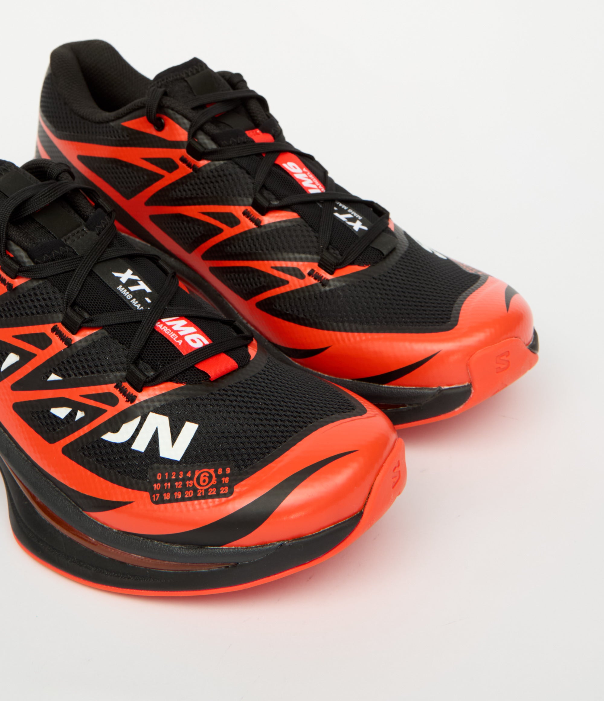 Le Salomon XT sono realizzate in collaborazione con MM6 Maison Margiela, portando l'outdoor sui sentieri dello streetwear urbano. Realizzate con una tomaia interamente in mesh, le Salomon XT x MM6 rivisitano un classico del footwear da trail runningn con un tocco urbano: il classico sistema di allacciatura QuickLAce di Salomon è stato sostituito con una tradizionale chiusura con lacci. La suola Mud Contagrip® è stata ripensata senza tasselli profondi, garantendo l'aderenza di sempre. Il modello è impreziosito dai loghi collaborativi MM6 Maison Margiela e Salomon.