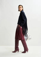 I bermuda sono realizzati in morbida pelle ecologica. Concepiti per una vestibilità rilassata, sono alti in vita e cadono su una gamba ampia che arriva appena sopra il ginocchio. Le pinces rovesciate in vita valorizzano la silhouette. Rifiniti con tasche laterali oblique, tasche a filetto sul retro e classici passanti per la cintura, si chiudono con zip e bottone nascosti. Abbinali a una camicia elegante o a una canottiera aderente per un tocco di classe naturale.