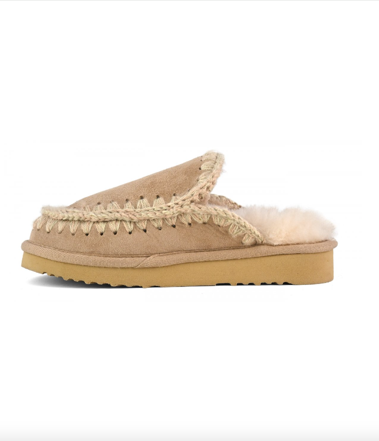 Un must-have per l'inverno: l'eskimo slipper di mou con suola in EVA, realizzata a mano in autentico montone double-face e impreziosita dalle iconiche cuciture in lana all'uncinetto firmate mou. ideale da indossare nei momenti di relax, questa calzatura offre un comfort straordinario grazie alla suola leggera in EVA e gomma. Disponibile in una gamma di eleganti sfumature.