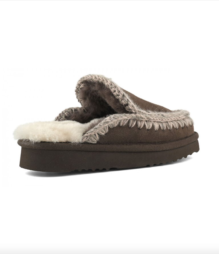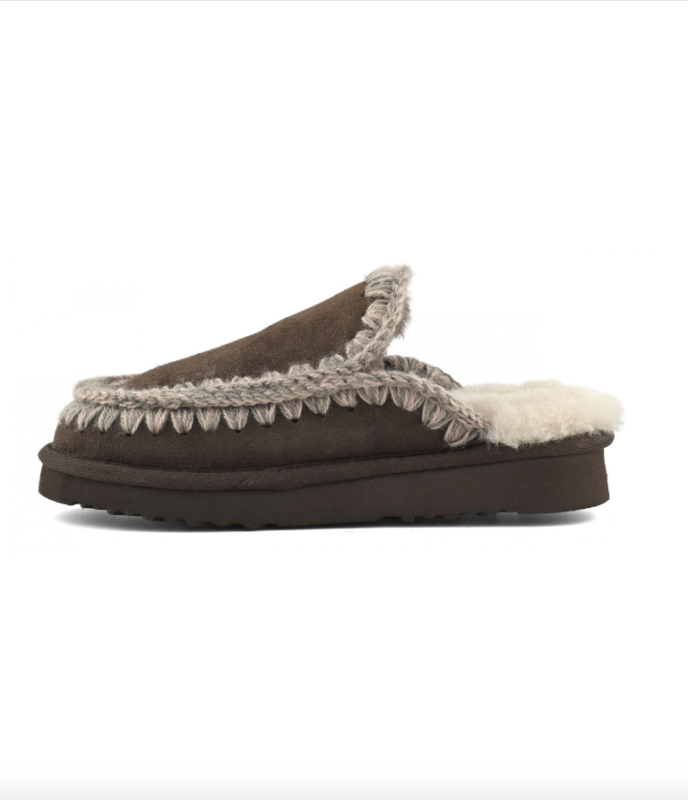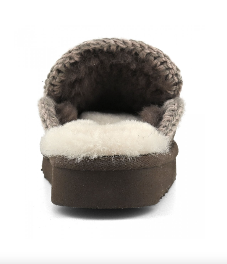 Un must-have per l'inverno: l'eskimo slipper di mou con suola in EVA, realizzata a mano in autentico montone double-face e impreziosita dalle iconiche cuciture in lana all'uncinetto firmate mou. ideale da indossare nei momenti di relax, questa calzatura offre un comfort straordinario grazie alla suola leggera in EVA e gomma. Disponibile in una gamma di eleganti sfumature.