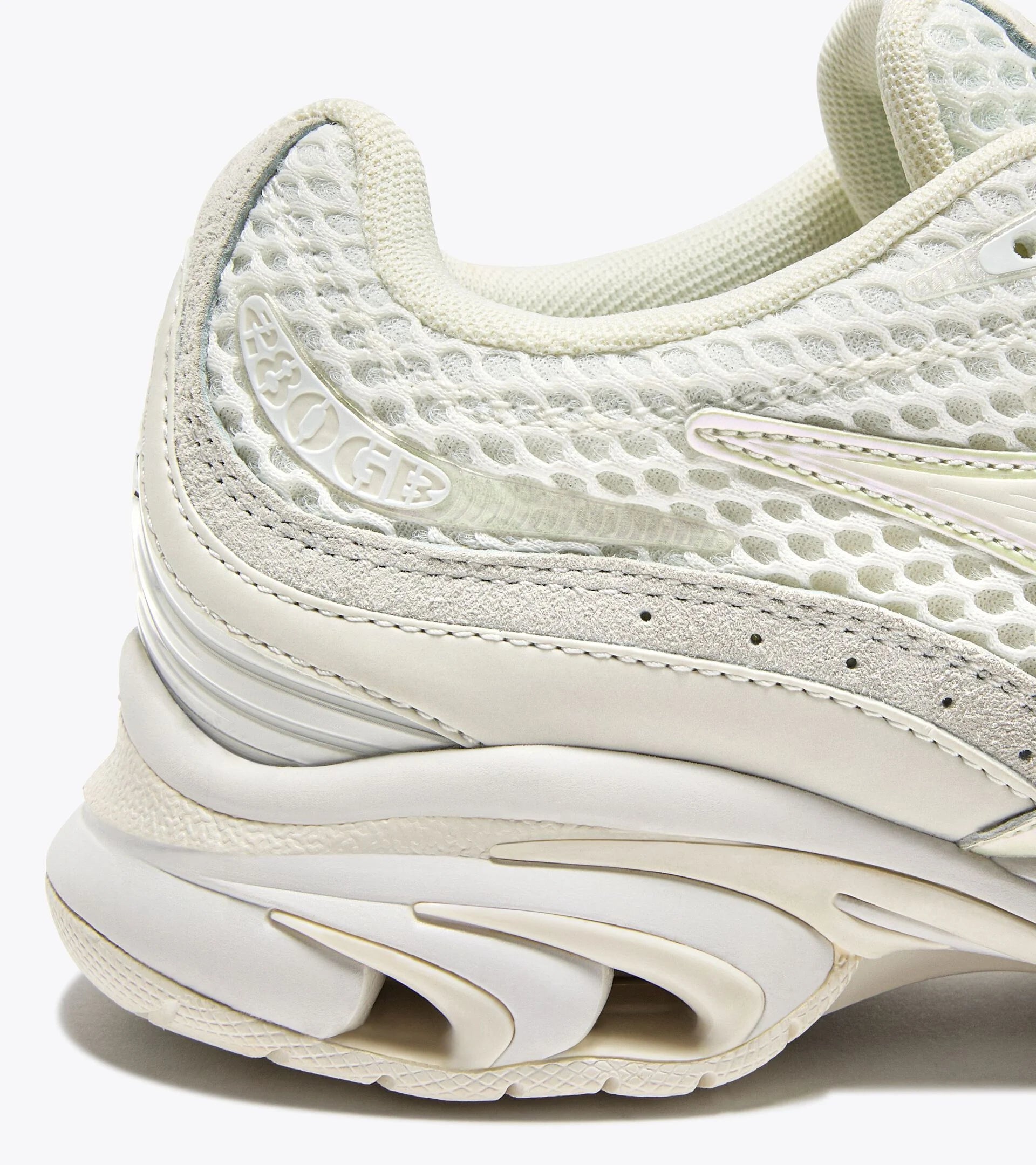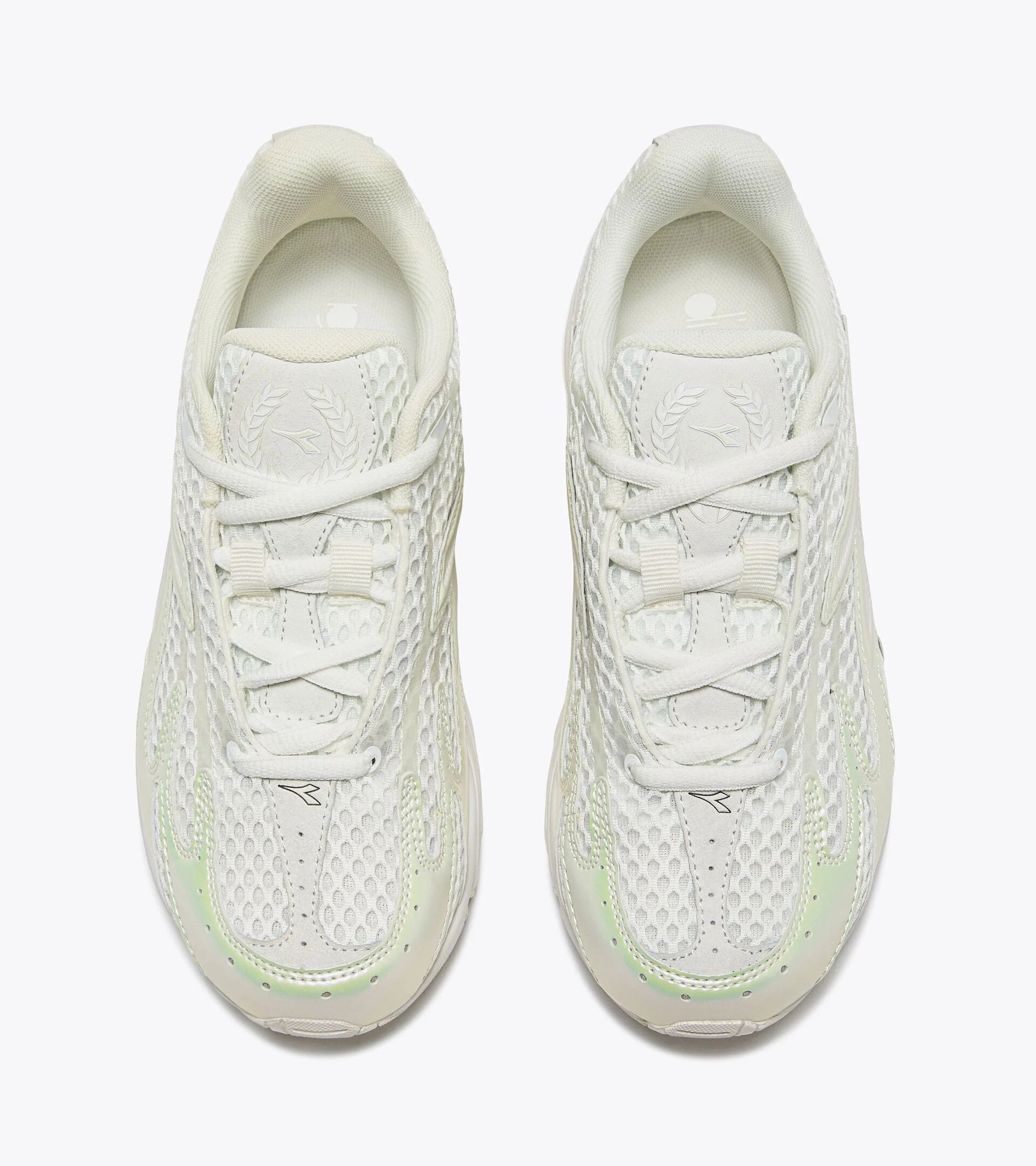 Sneaker chunky, il design delle Mythos Propulsion 280 si ispira alle scarpe da running Diadora degli anni 2000. La nuova variante Scarab porta sul tavolo dettagli iridescenti a contrasto con la pelle pigskin, incanalando tutte le vibes delle sneaker d’ispirazione Y2K.
