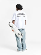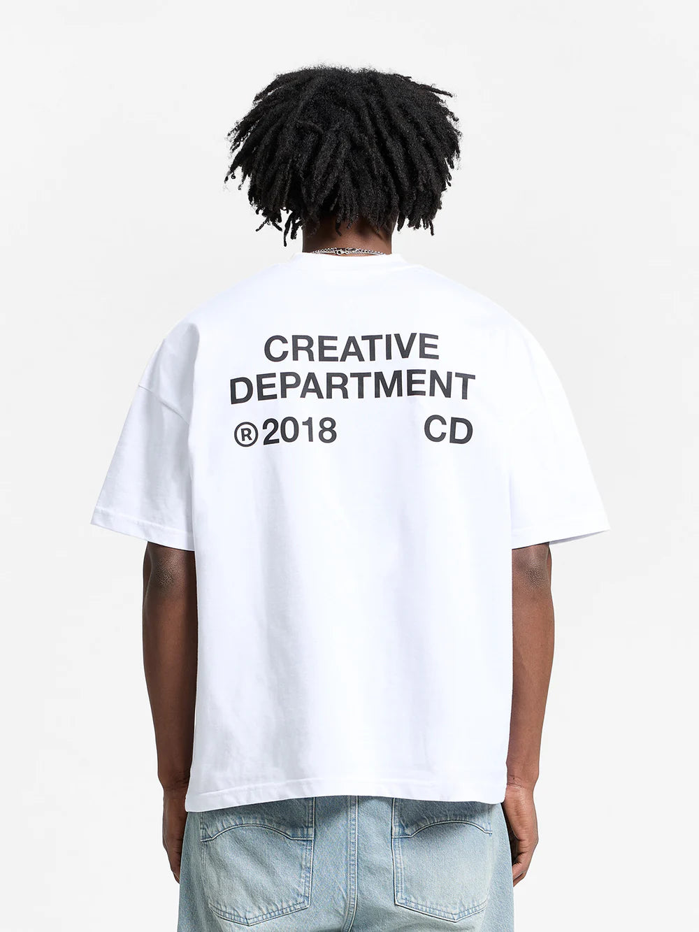 La nostra T-SHIRT CREATIVE DEPARTMENT unisce artigianalità di alta qualità e comfort eccezionale. Realizzata in morbido e resistente cotone bianco , offre una sensazione di lusso e una qualità che dura a lungo. Una stampa bianca sul petto e sulla schiena aggiunge un tocco di fascino, ed è pensata esclusivamente per i membri del Creative Department.