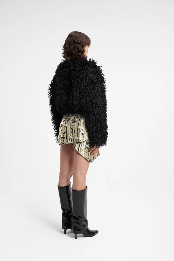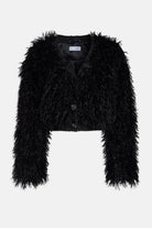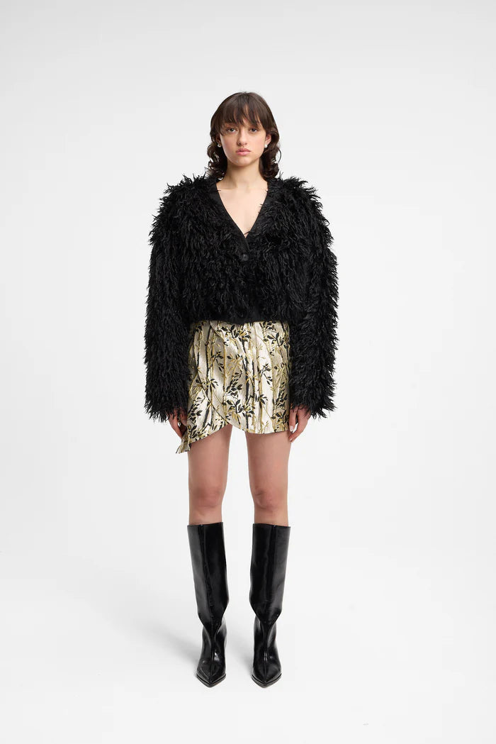 Giacca corta stile cardigan in eco Mongolia con fodera in satin