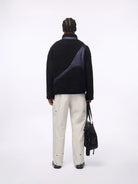 Tasca inferiore con cerniera con tiracorda a maglie con estremità trasparenti.
