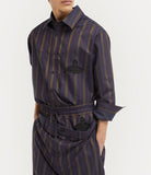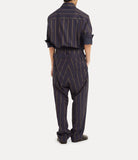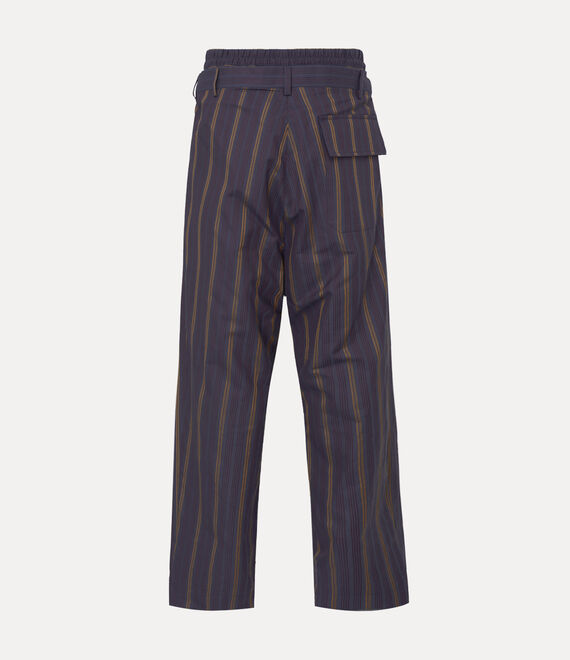 I pantaloni Builder si rinnovano per la stagione con una versione in cotone a righe impreziosita da un Orb ricamato sul fianco. Si distinguono per la doppia fascia in vita, tipica di questo iconico modello di Vivienne apparso per la prima volta nella collezione “Save the Rainforest” Autunno-Inverno 2014-15.