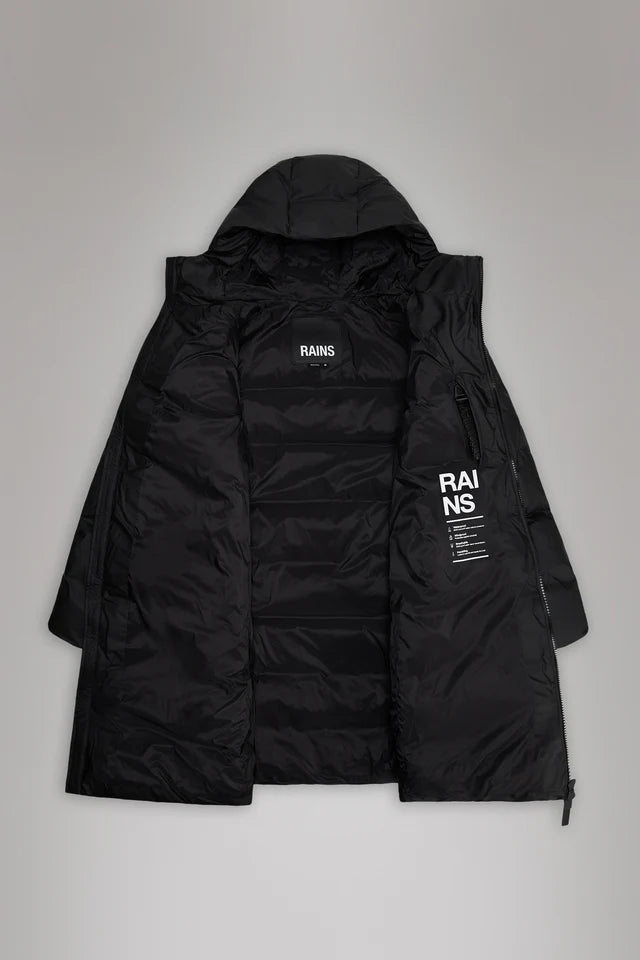 Questo piumino raffinato è costruito con la tecnologia a camere impunturate e realizzato nell'iconico tessuto PU di Rains con cuciture a doppia saldatura. Il finish è leggero, morbido