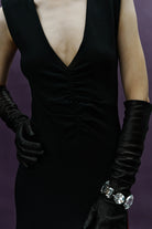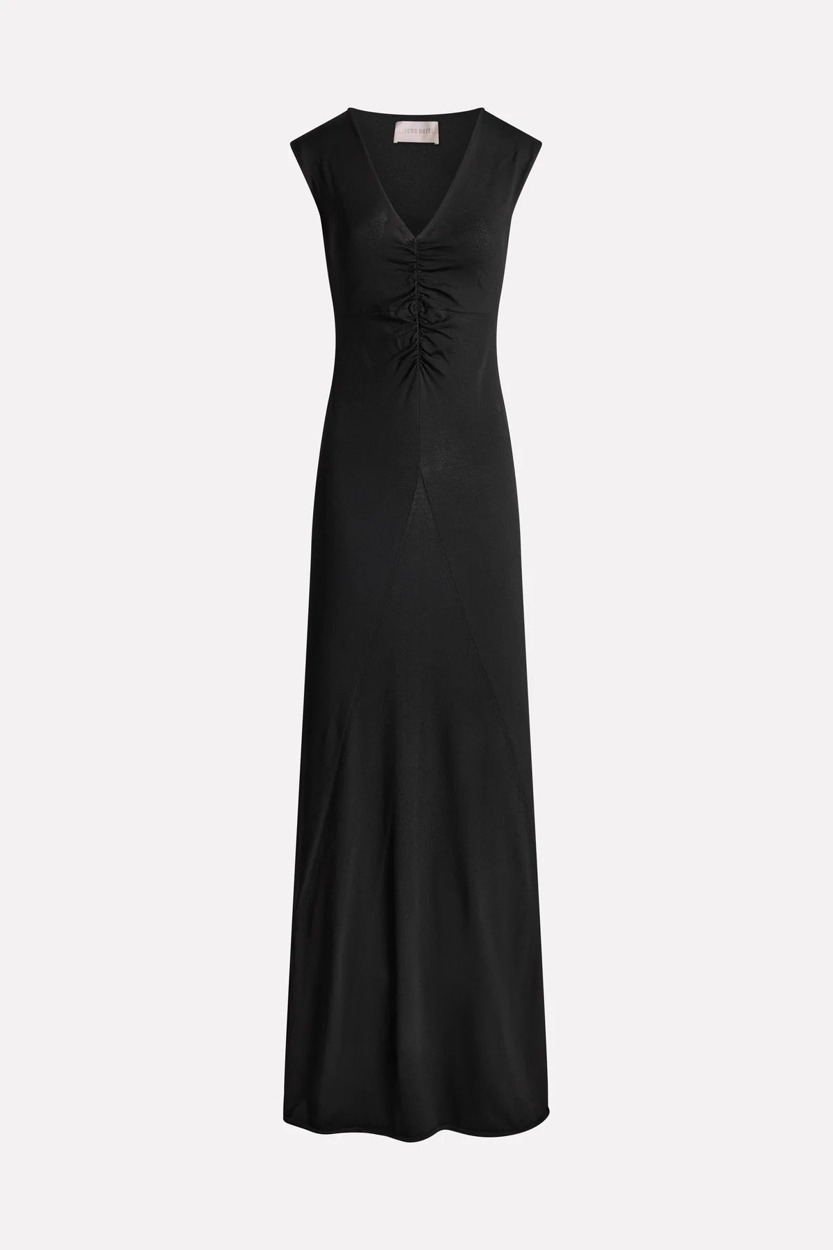 Abito in viscosa nero a sirena con arriccio sul davanti