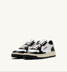 Realizzata in pelle morbida dall'aspetto autentico, si caratterizza per il deciso motivo color block in bianco e nero e la suola in gomma naturale con il battistrada nero che scandisce il ritmo dei tuoi passi.