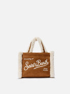 Borsa a mano morbida Vanity Mini Shearling in montone cammello