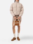 La Vanity Mini Shearling color cammello unisce calore e stile per un look sofisticato e contemporaneo.
