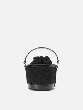 Borsa a secchiello in misto lana e pelle sintetica