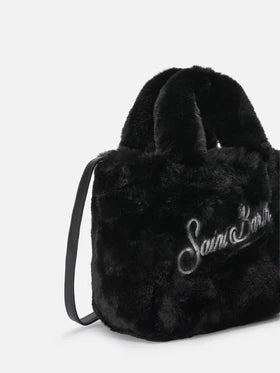 Borsa morbida a mano Vanity Mini Soft in faux fur nero