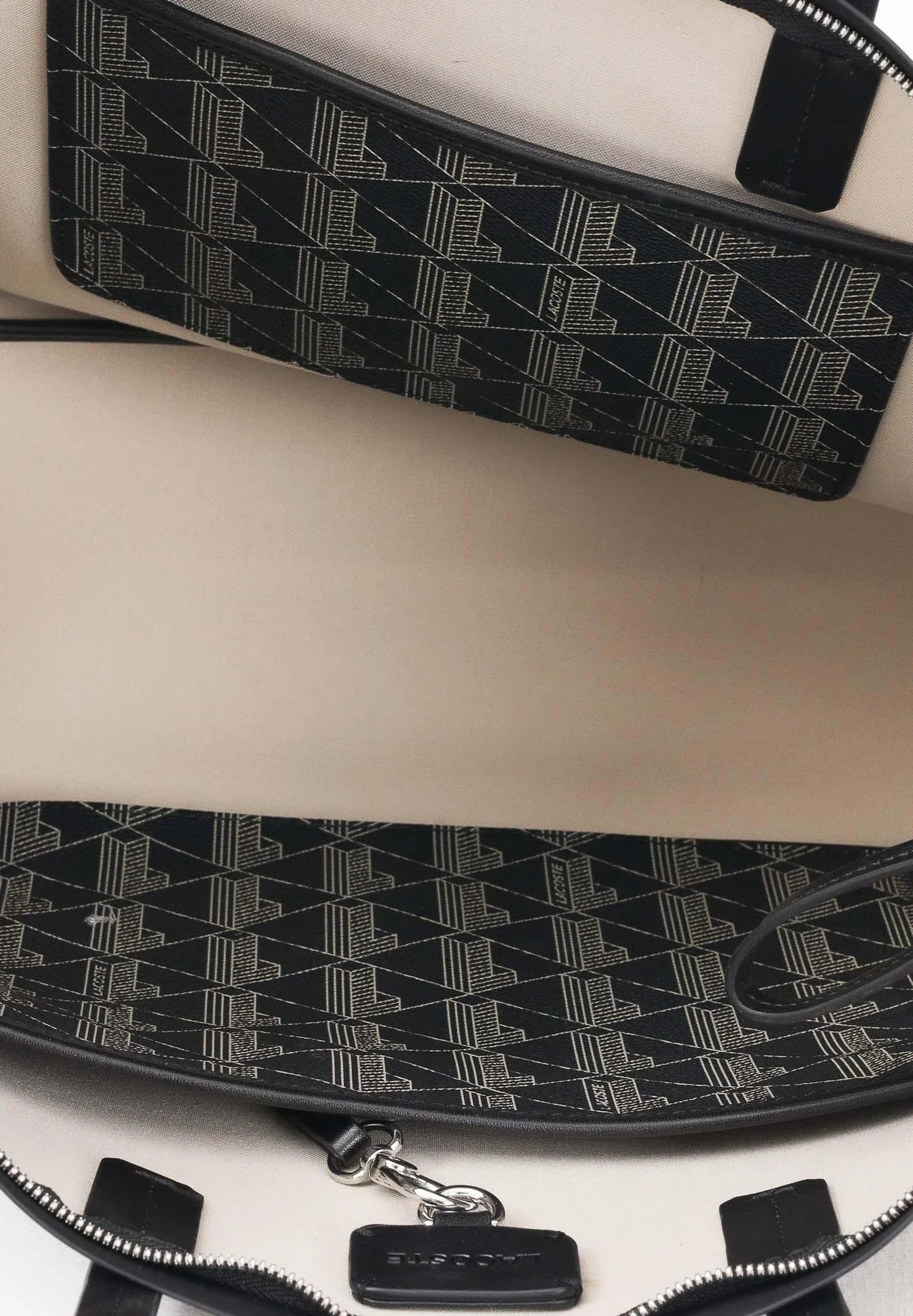 LACOSTE Shopper nera da donna con pochette Zely. Questa borsa presenta l'iconico monogramma Lacoste, per un look audace ed elegante. I due grandi manici ne consentono il trasporto a spalla o a mano. Abbastanza grande da contenere un laptop da 17", presenta anche una piccola tasca applicata e una pochette rimovibile con zip. L35 x H30 x P14 cm. Stagione autunno inverno.