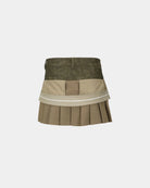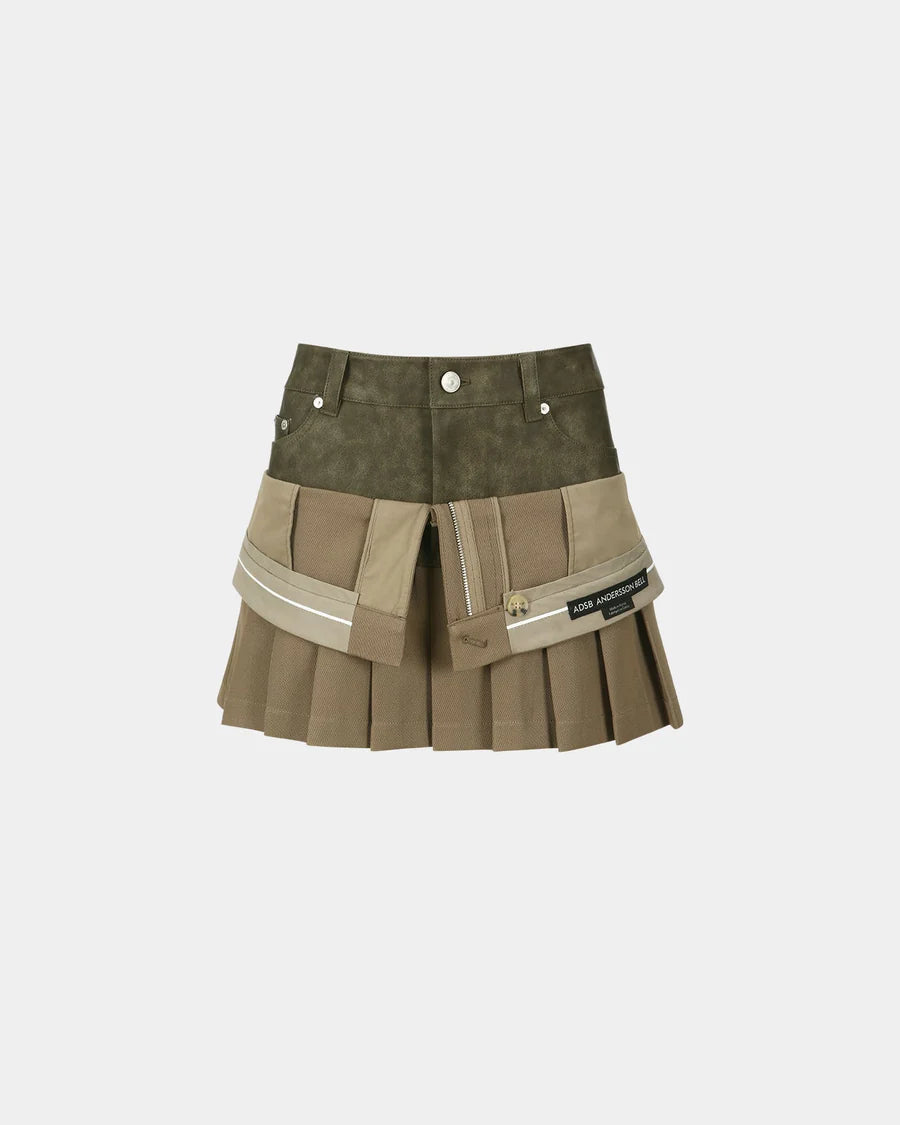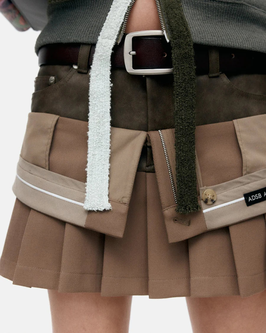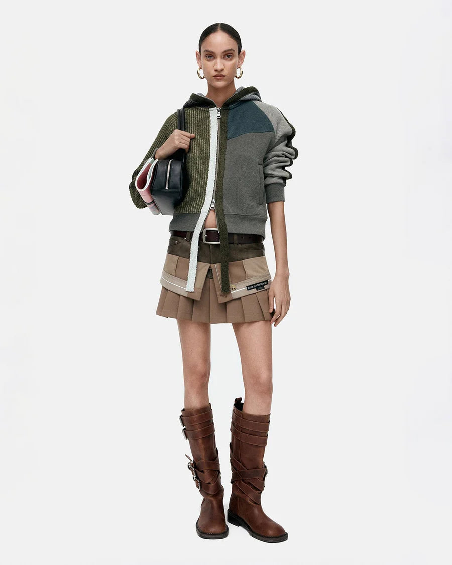 - Mix contrastante di tessuto da abito e similpelle screpolata
