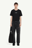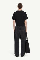 Questi jeans sono caratterizzati da una linea comoda a gamba dritta, con vita elasticizzata e orli a vivo che richiamano lo stile casual. La leggera scoloritura e le volute macchie di vernice evocano la spontaneità artistica, mentre la caratteristica linea di impunture bianche sul retro rappresenta un segno di appartenenza alla Maison.