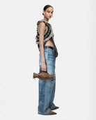 Jeans sabbiato con stampa taschini giacca