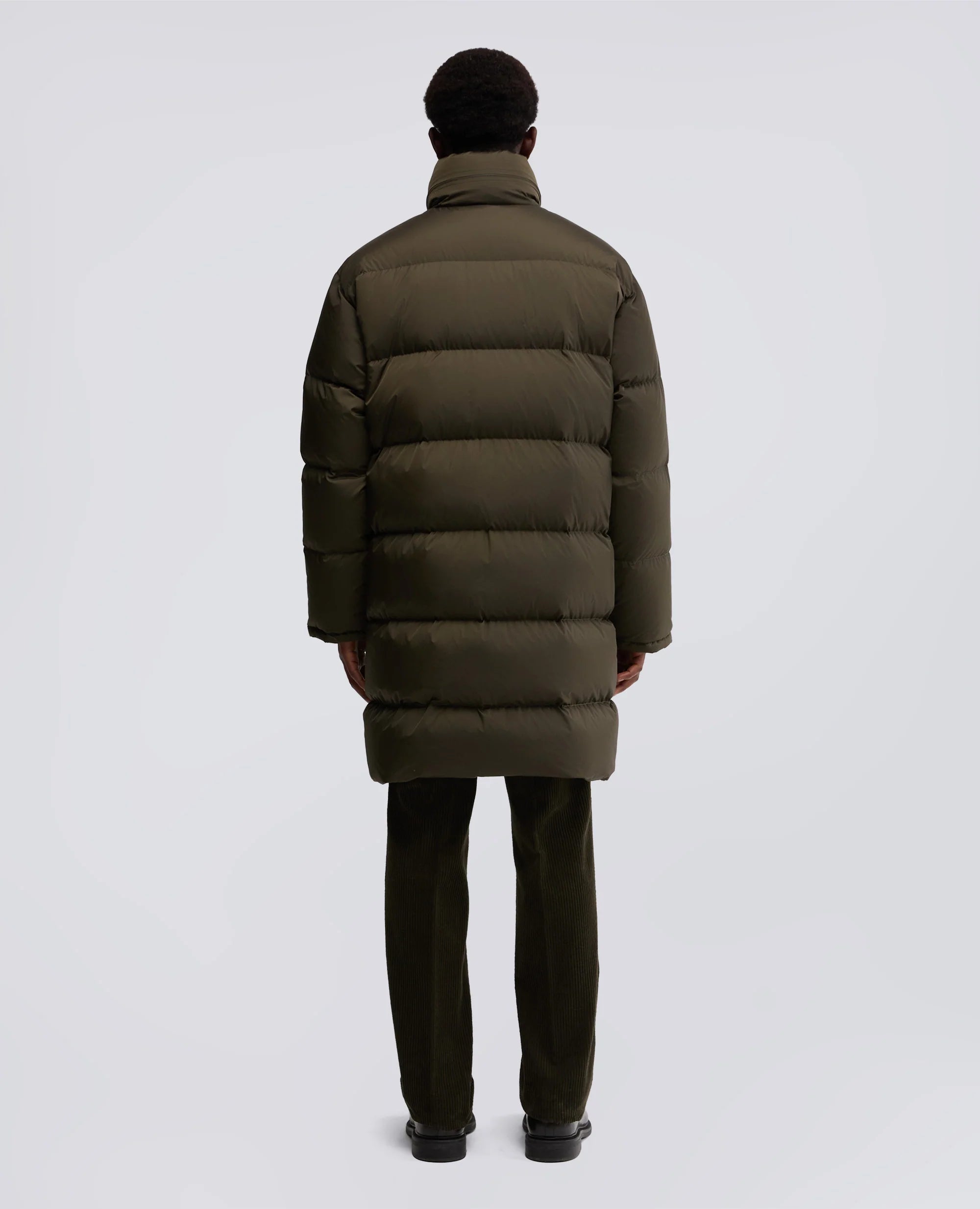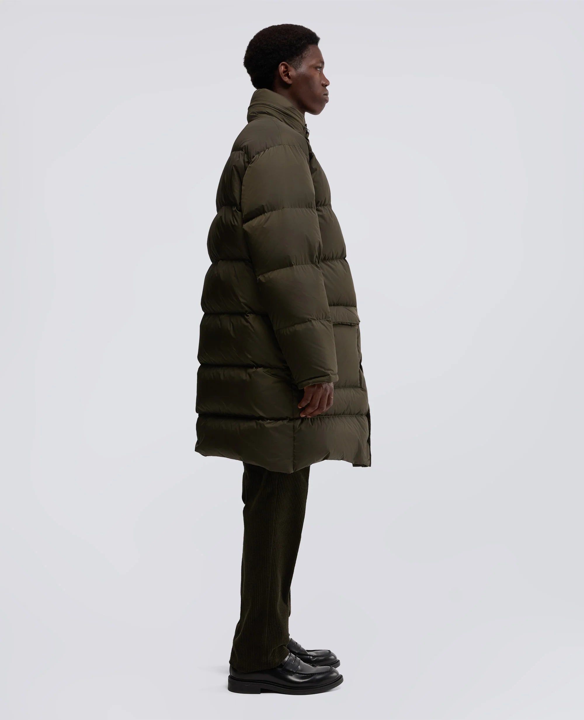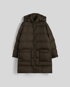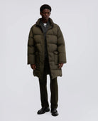 Piumino lungo in nylon riciclato verde militare