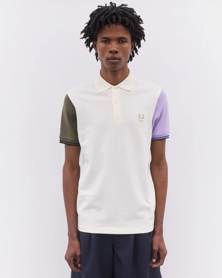 Polo a maniche corte Fred Perry da uomo Ecrù/Verde/Viola