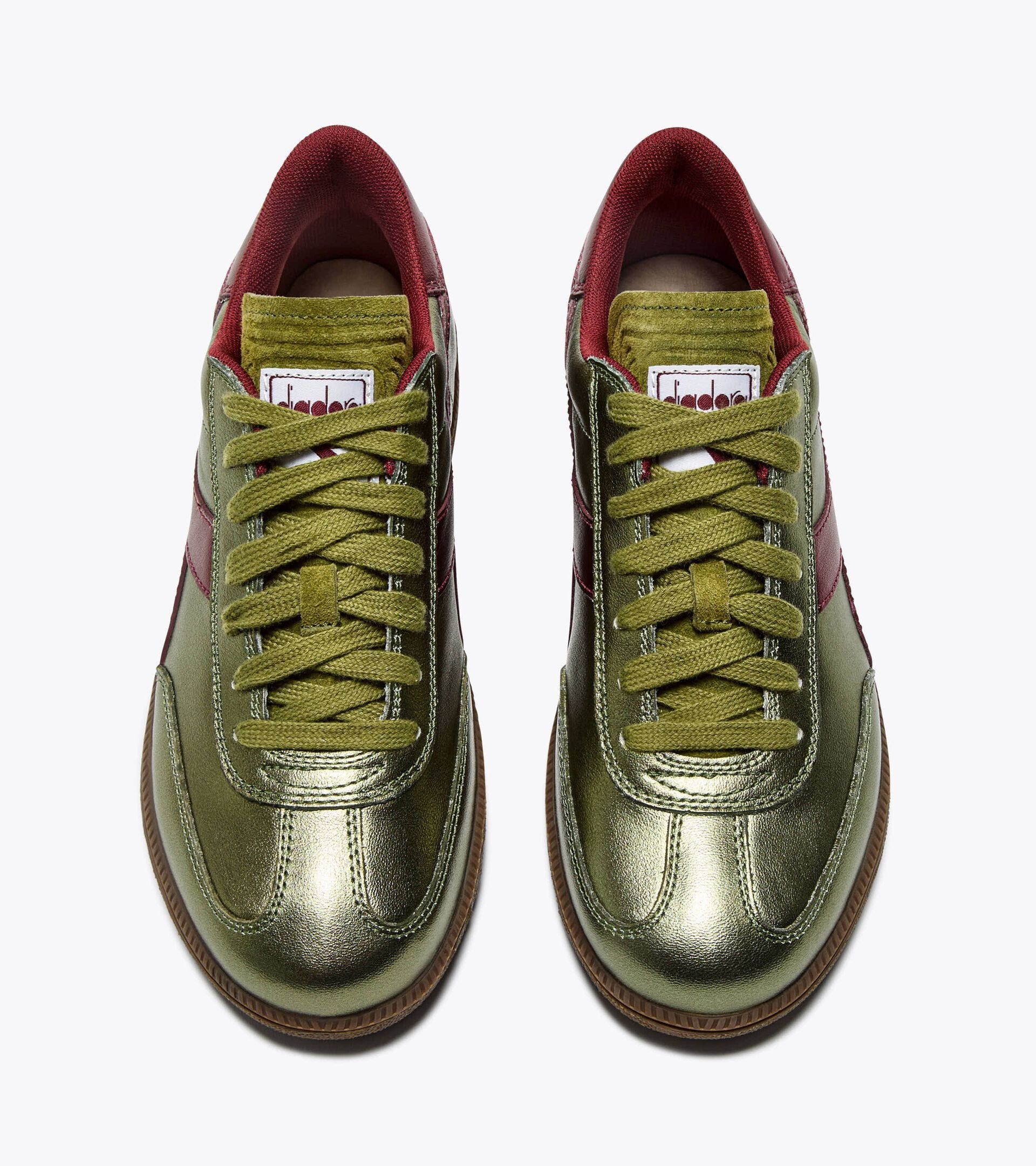Trainer Metalized: l’iterazione con tomaia interamente in pelle metallizzata, con fregio a contrasto. Tutt’altro che low-profile.