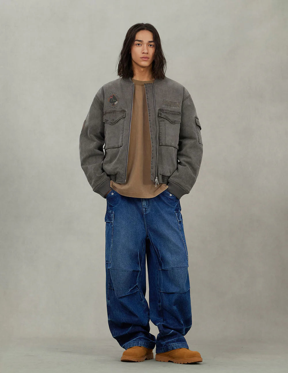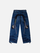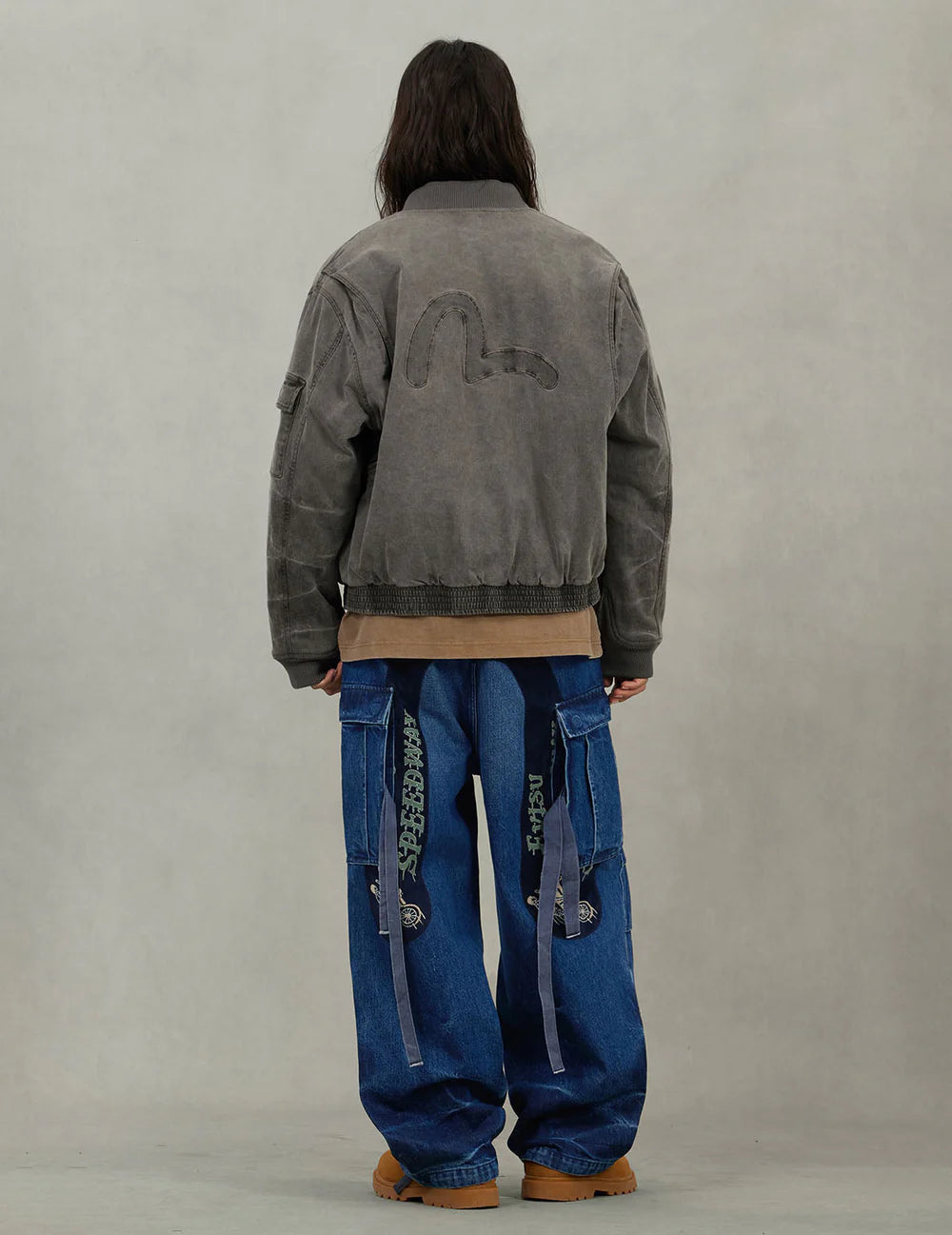 Jeans cargo a gamba larga con ricamo Daicock e stampa moto